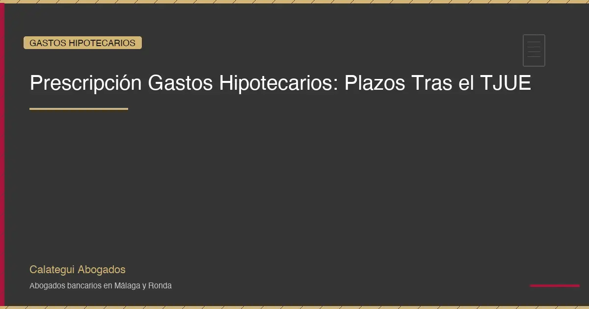 Si pagaste gastos de hipoteca que correspondÃan al banco, es fundamental conocer los plazos de prescripción para reclamarlos. La jurisprudencia ha evolucionado significativamente en los últimos años, especialmente tras las sentencias del Tribunal Supremo de 2024 que han aclarado cuándo comienza a contar el plazo de cinco años para ejercitar la acción de repetición.